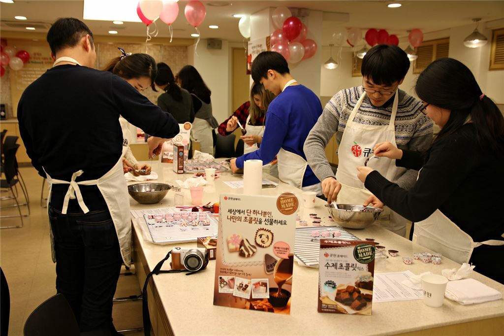 [아시아경제 이주현 기자]삼양사는 12일 서울 재동 소재 큐원 홈메이드플라자에서 ‘큐원 홈메이드 밸런타인데이 쿠킹클래스’를 개최했다. 밸런타인데이를 맞아 연인들에게 즐거운 추억을 만들어 주기 위해 열린 이 행사는 큐원 홈페이지, 블로그, 페이스북을 통해 사전 참가신청을 받았으며, 이 중 20~30대 남녀 12커플을 선정해 행사에 초대했다.이날 행사는 ‘큐원 홈메이드 수제초콜릿믹스’를 이용해 ‘가나슈 컵 초콜릿’ 만들기라는 주제로 진행됐다. 연인들은 큐원 홈메이드로 자신만의 특색 있는 초콜릿을 만들고, 완성작품과 함께 사진을 찍는 등 화기애애한 시간을 가졌다. 이번 행사는 젊은 직장인을 배려해 저녁 시간에 마련됐으며, 참여한 커플들에게 커플포토 머그컵을 증정해 서로에게 더욱 뜻 깊은 이벤트가 됐다.한편 삼양사 큐원은 국내 최초로 길거리 간식인 호떡을 집에서 쉽게 만들 수 있도록 한 찰호떡믹스 개발을 시작으로 쿠키, 머핀, 파운드케익, 브라우니 등의 홈메이드 믹스제품을 출시했다. 삼양사 관계자는 “앞으로도 큐원 홈메이드 플라자를 활용해 고객과 함께하는 다양한 체험 이벤트를 계속 펼쳐나갈 예정”이라고 말했다.이주현 기자 jhjh13@asiae.co.kr<ⓒ세계를 보는 창 경제를 보는 눈, 아시아경제(www.asiae.co.kr) 무단전재 배포금지>