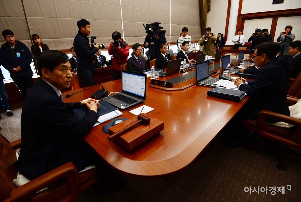 [아시아경제 백소아 기자] 이주열 한국은행 총재가 16일 서울 중구 한국은행 본관에서 열린 금융통화위원회 본회의에서 회의 시작을 기다리고 있다.백소아 기자 sharp2046@asiae.co.kr<ⓒ세계를 보는 창 경제를 보는 눈, 아시아경제(www.asiae.co.kr) 무단전재 배포금지>