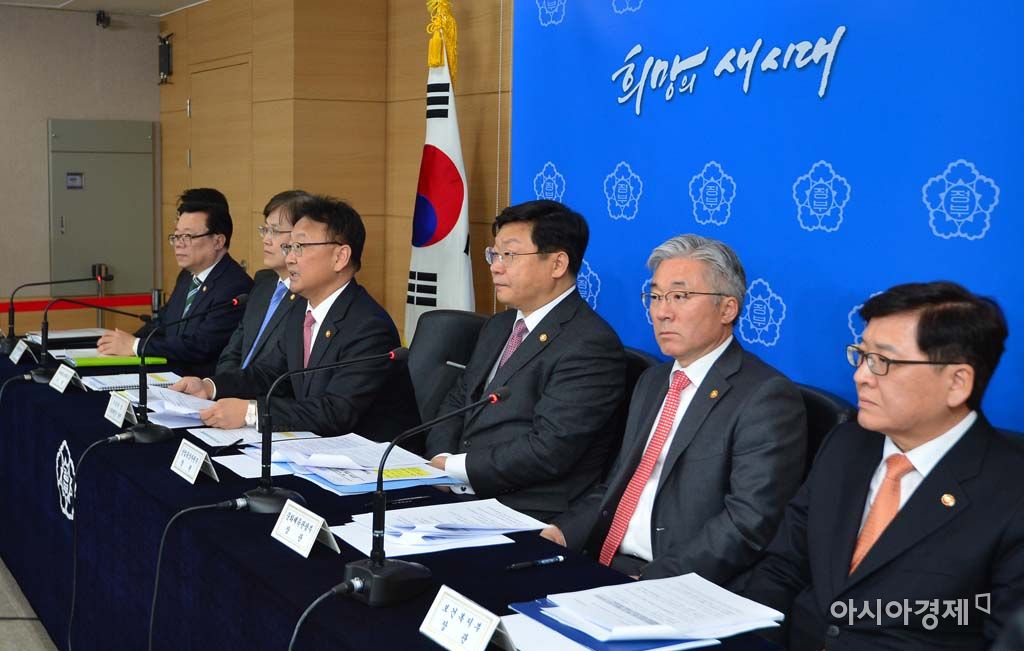 [아시아경제 백소아 기자] 17일 서울 세종로 정부서울청사에서 유일호 경제부총리(왼쪽부터 네 번째)를 비롯한 관계장관들이 무역투자진흥회의 투자 활성화 대책을 발표하고 있다. 이날 유 부총리는 "민간 투자와 신산업 발전, 수출 동력 창출을 막는 규제를 과감히 걷어내 2018년까지 약 50조 이상의 민간 투자와 일자리 블루 오션을 개척하겠다"고 말했다. 강호인 국토교통부 장관, 이동필 농림축산식품부, 최양희 미래창조과학부 장관, 유 부총리, 주형환 산업통상자원부 장관, 김종덕 문화체육부 장관, 정진엽 보건복지부 장관(왼쪽부터)백소아 기자 sharp2046@asiae.co.kr<ⓒ세계를 보는 창 경제를 보는 눈, 아시아경제(www.asiae.co.kr) 무단전재 배포금지>