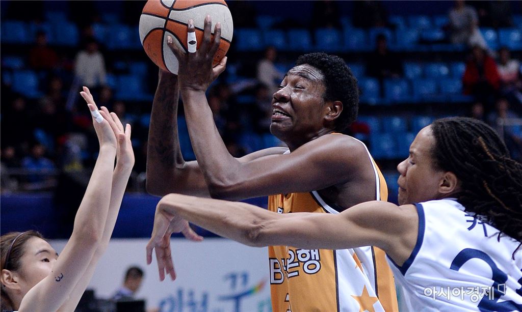 [인천=아시아경제 김현민 기자] 여자프로농구 신한은행과 KB국민은행의 경기가 17일 인천 도원체육관에서 열렸다. 국민은행 하워드가 상대 커리의 거친 수비에 깜짝 놀라고 있다. 김현민 기자 kimhyun81@asiae.co.kr<ⓒ세계를 보는 창 경제를 보는 눈, 아시아경제(www.asiae.co.kr) 무단전재 배포금지>