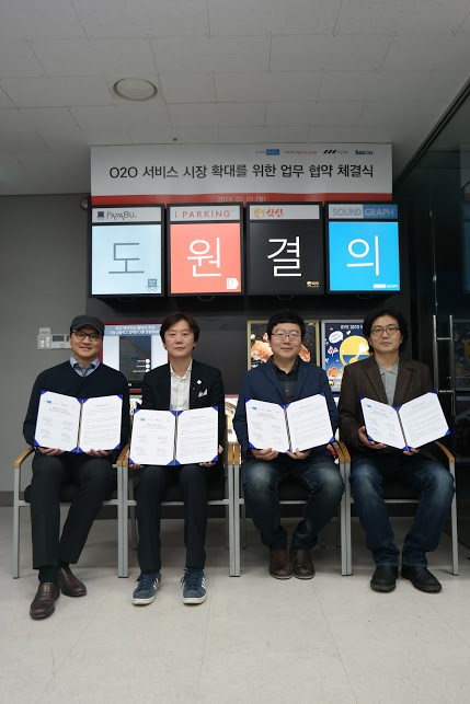 [아시아경제 강희종 기자]모바일 맛집 서비스, 대리운전, 디지털사이니지, 스마트 주차 솔루션 등 각 분야의 O2O(온라인 투 오프라인) 선두기업 4개사가 모여 시장 확대를 위해 손을 잡았다.씨온(대표 안병익), 사운드그래프(대표 정동관), 트리플렛 (대표 신동화), 파킹클라우드(대표 신상용)는 각사의 서비스를 연계해 원스톱 서비스를 제공하기 위한 양해각서(MoU)를 체결했다고 18일 밝혔다.씨온의 맛집 정보 앱인 '식신'은 검증된 맛집정보를 제공하며 250만 다운로드를 기록하고 있다.사운드그래프는 베스킨라빈스, 던킨도너츠 등 리테일 매장의 디스플레이에 실시간 콘텐츠를 표시하는 디지털사이니지 서비스를 제공하고 있다. 프리플렛은 20만 회원을 보유하고 있는 모바일 대리운전 서비스인 '파파부'를 운영하고 있다. 파킹클라우드는 스마트 파킹 솔루션 '아이파킹'을 서비스하고 있다. 4사는 각 서비스 간 다양한 분야의 제휴를 통해 서비스를 확대 발전시킨다는 전략이다. 사운드그래프, 파킹클라우드, 씨온은 디지털사이니지 솔루션을 통한 매장의 '디지털 보드' 및 '주차장 광고' 사업에 협력한다. 파킹클라우드와 씨온은 자영업자들을 위한 방문고객 주차서비스를 제공하는 '아이파킹 멤버스' 서비스와 '주변 주차장 안내' 서비스를 제공한다. 트리플렛과 파킹클라우드는 탁송서비스를 이용한 '주차대행' 서비스를 제공한다. 4개사의 서비스를 유기적으로 연결하는 '도원결의 프로젝트'는 올해 상반기 중으로 서비스 협력을 완료하고 서비스 확장에 주력한다는 계획이다.씨온의 안병익 대표는 "급변하는 O2O 시장환경에서 스타트업 간의 협력은 바람직한 상생 모델"이라면서 "이번 도원결의 프로젝트를 통하여 시너지 효과를 창출하고 경쟁력을 높일 계획"이라고 밝혔다.강희종 기자 mindle@asiae.co.kr<ⓒ세계를 보는 창 경제를 보는 눈, 아시아경제(www.asiae.co.kr) 무단전재 배포금지>