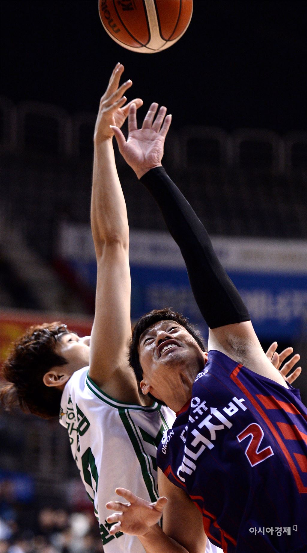 [고양=아시아경제 김현민 기자] 프로농구 고양 오리온과 원주 동부의 경기가 18일 고양체육관에서 열렸다. 오리온 이현민이 상대 김종범과 리바운드를 다투고 있다. 김현민 기자 kimhyun81@asiae.co.kr<ⓒ세계를 보는 창 경제를 보는 눈, 아시아경제(www.asiae.co.kr) 무단전재 배포금지>