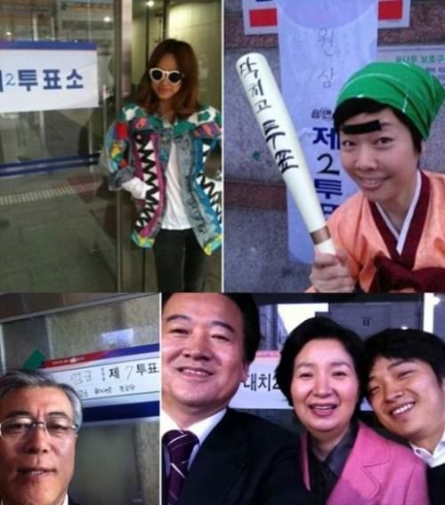 이효리 김미화 정동영 문재인(시계방향) 투표 인증샷. 사진=각 SNS