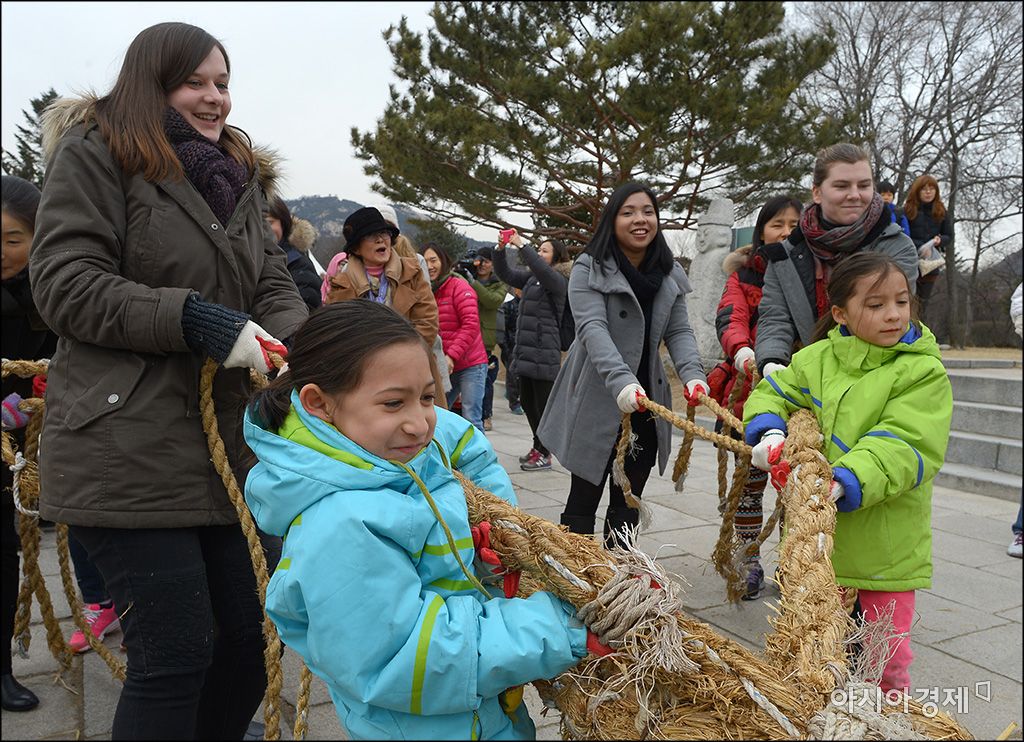 [아시아경제 윤동주 기자] 정월대보름을 맞아 22일 서울 종로구 국립민속박물관에서 외국인들이 줄다리기 시합을 하고 있다.윤동주 기자 doso7@asiae.co.kr<ⓒ세계를 보는 창 경제를 보는 눈, 아시아경제(www.asiae.co.kr) 무단전재 배포금지>
