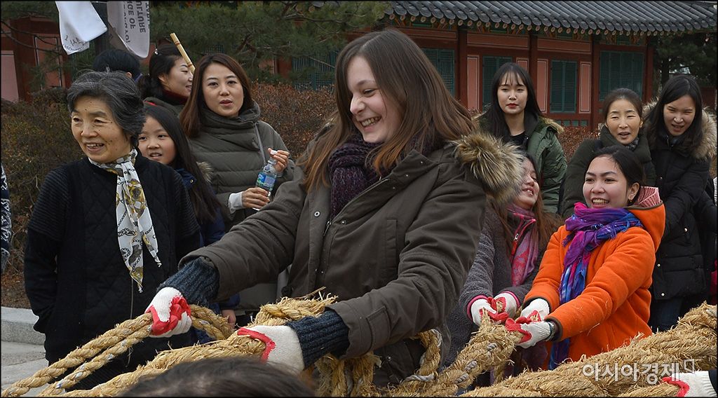 [아시아경제 윤동주 기자] 정월대보름을 맞아 22일 서울 종로구 국립민속박물관에서 외국인들이 줄다리기 시합을 하고 있다.윤동주 기자 doso7@asiae.co.kr<ⓒ세계를 보는 창 경제를 보는 눈, 아시아경제(www.asiae.co.kr) 무단전재 배포금지>