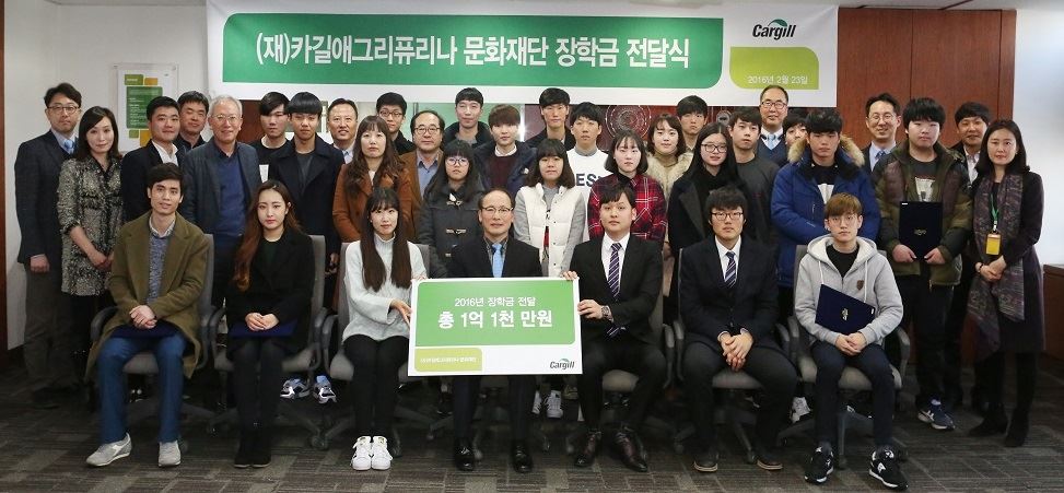 [아시아경제 이주현 기자]카길애그리퓨리나 문화재단은 23일, 경기도 성남시 카길애그리퓨리나 본사에서 ‘2016 장학금 전달식’을 개최하고 장학생 49명에게 총 1억1000만원을 수여했다.동물영양사업 기업 카길애그리퓨리나가 설립·운영하고 있는 문화재단은 국내외 축산관련 분야에 재학하고 있는 고등학생부터 대학원생 중 학업성적이 우수하고 장래 축산관련 분야에 종사할 인재를 선발해 매년 장학금을 지원하고 있다. 이번 2016년 장학생은 고등학생 27명, 대학생 18명, 대학원생 4명으로 총 49명의 인재들이 선정됐다. 카길애그리퓨리나 문화재단은 지난 1999년부터 올해까지 561명의 장학생을 선정하여 총 11억6000만원의 장학금을 수여했다.이보균 카길애그리퓨리나 문화재단 이사장은 “17년간 지속돼 온 카길애그리퓨리나 문화재단 장학사업을 통해 국내 축산업을 이끌어갈 미래 축산의 주역인 전문 인재들이 배출되고 있어 기쁘게 생각한다”라며 “한국 축산업의 발전을 함께 도모하고, 나아가 사회를 위한 훌륭한 인재로 성장하기 바란다”고 축하의 인사를 전했다.국내 농업분야 최초의 문화재단인 카길애그리퓨리나 문화재단은 1997년 설립이래 국내 축산업 발전을 위한 연구·기술 활동을 지원하고, 전문인력 양성을 장려하기 위해 다양한 활동을 하고 있다. 축산 분야의 신기술과 지식 창출을 지원하기 위해 매년 연구기술대상을 선별해 시상한다. 또한, 축산 관련 지도자, 교수로 구성된 카길애그리퓨리나 기술자문위원회를 통해 매년 세미나를 개최하고 신기술과 연구실적을 공유함으로써 축산업 발전에 공헌하고 있다.한편, 카길애그리퓨리나는 식품, 농업, 재무, 산업 제품 및 서비스를 전세계에 제공하는 카길의 자회사 겸 한국 법인으로, 동물 영양 기술과 서비스를 공급하는 동물영양사업 선도기업이다.이주현 기자 jhjh13@asiae.co.kr<ⓒ세계를 보는 창 경제를 보는 눈, 아시아경제(www.asiae.co.kr) 무단전재 배포금지>