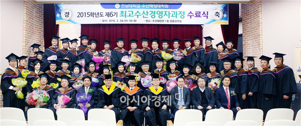 전남대학교(총장 지병문) 수산해양대학원이 24일 제6기 최고수산경영자과정 수료식을 갖고 47명의 수료생을 배출했다.<br />
