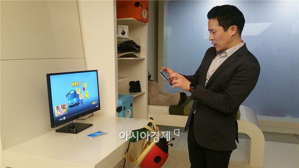 크롬캐스트 2세대로 TV에서 '뽀로로TV'를 작동시키는 모습.