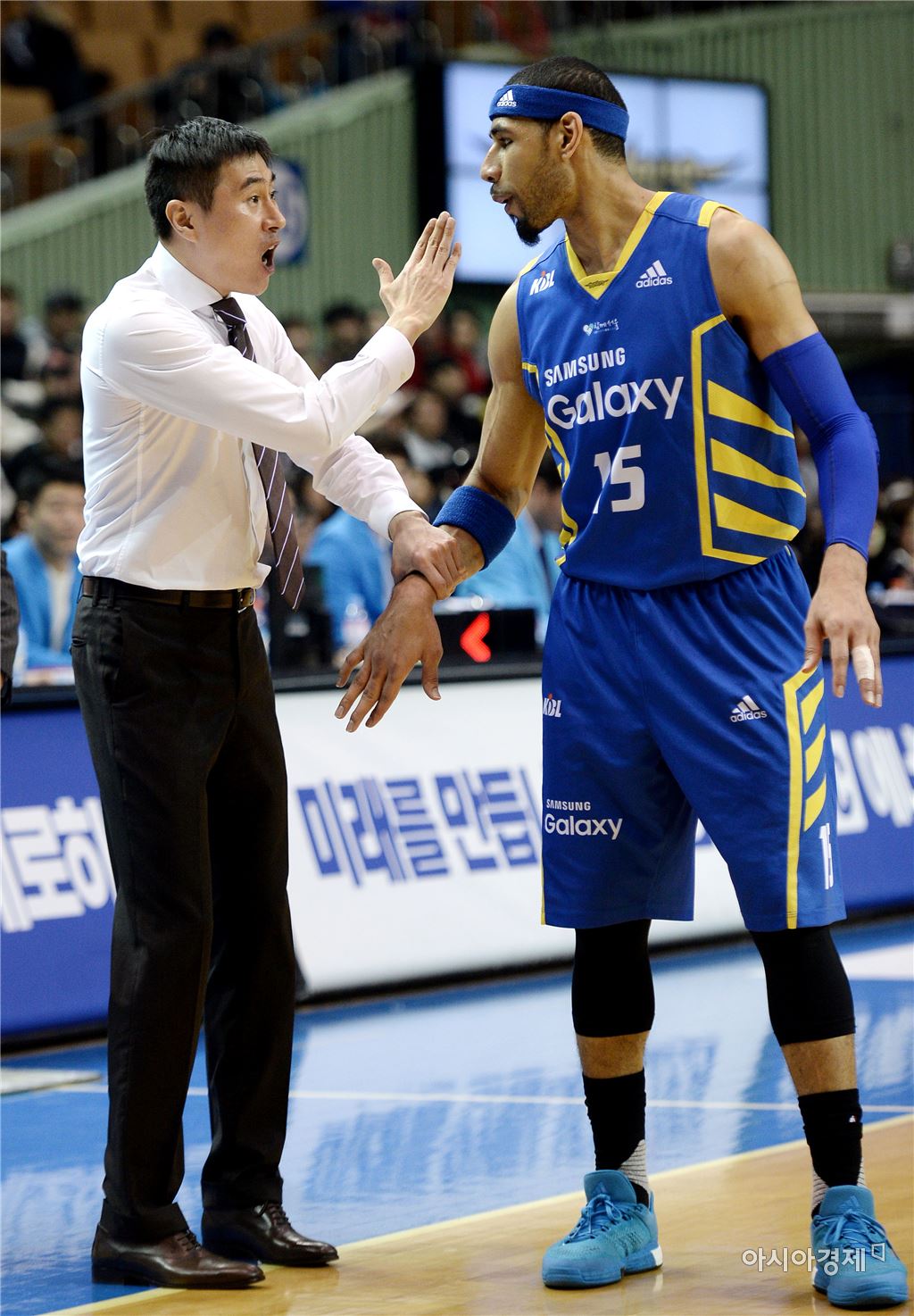 [잠실=아시아경제 김현민 기자] 2015~2016 프로농구 6강 플레이오프 서울 삼성과 안양 KGC인삼공사의 경기가 2일 잠실실내체육관에서 열렸다. 삼성 이상민 감독이 문태영에게 작전을 지시하고 있다. 김현민 기자 kimhyun81@asiae.co.kr<ⓒ세계를 보는 창 경제를 보는 눈, 아시아경제(www.asiae.co.kr) 무단전재 배포금지>