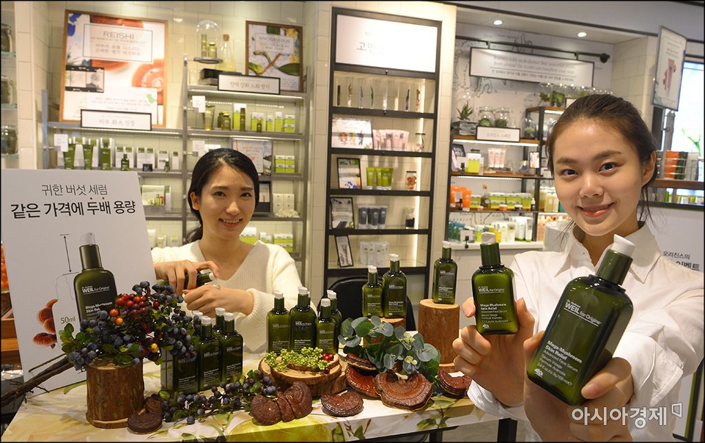 [아시아경제 윤동주 기자] 오리진스는 6일 서울 중구 롯데백화점 매장에서 '메가 버섯 세럼' 대용량 할인 행사를 알리는 쇼케이스를 진행하고 있다. 국내 런칭 15주년을 기념해 시작하는 이번 행사는 '메가 버섯 세럼 100ml 대용량 제품을 50ml 가격에 판매한다.윤동주 기자 doso7@asiae.co.kr<ⓒ세계를 보는 창 경제를 보는 눈, 아시아경제(www.asiae.co.kr) 무단전재 배포금지>