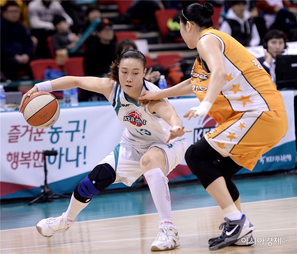 [부천=아시아경제 김현민 기자] 여자프로농구 KEB하나은행과 KB스타즈의 경기가 6일 부천실내체육관에서 열렸다. KEB 김정은이 상대 수비를 뚫고 공격하고 있다. 김현민 기자 kimhyun81@asiae.co.kr<ⓒ세계를 보는 창 경제를 보는 눈, 아시아경제(www.asiae.co.kr) 무단전재 배포금지>
