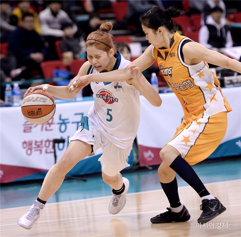 [부천=아시아경제 김현민 기자] 여자프로농구 KEB하나은행과 KB스타즈의 경기가 6일 부천실내체육관에서 열렸다. KEB 김이슬이 상대 수비를 뚫고 공격하고 있다. 김현민 기자 kimhyun81@asiae.co.kr<ⓒ세계를 보는 창 경제를 보는 눈, 아시아경제(www.asiae.co.kr) 무단전재 배포금지>