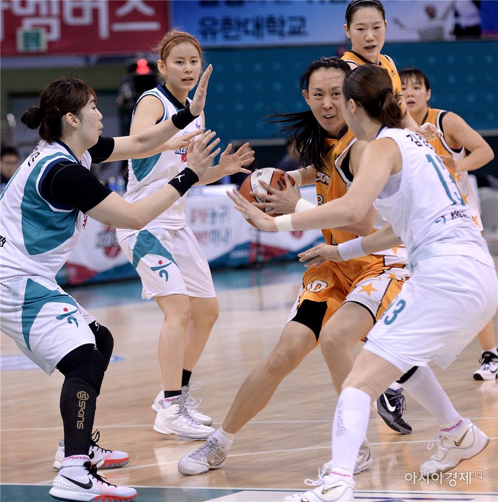 [부천=아시아경제 김현민 기자] 여자프로농구 KEB하나은행과 KB스타즈의 경기가 6일 부천실내체육관에서 열렸다. KB 변연하가 상대 수비를 뚫고 공격하고 있다. 김현민 기자 kimhyun81@asiae.co.kr<ⓒ세계를 보는 창 경제를 보는 눈, 아시아경제(www.asiae.co.kr) 무단전재 배포금지>
