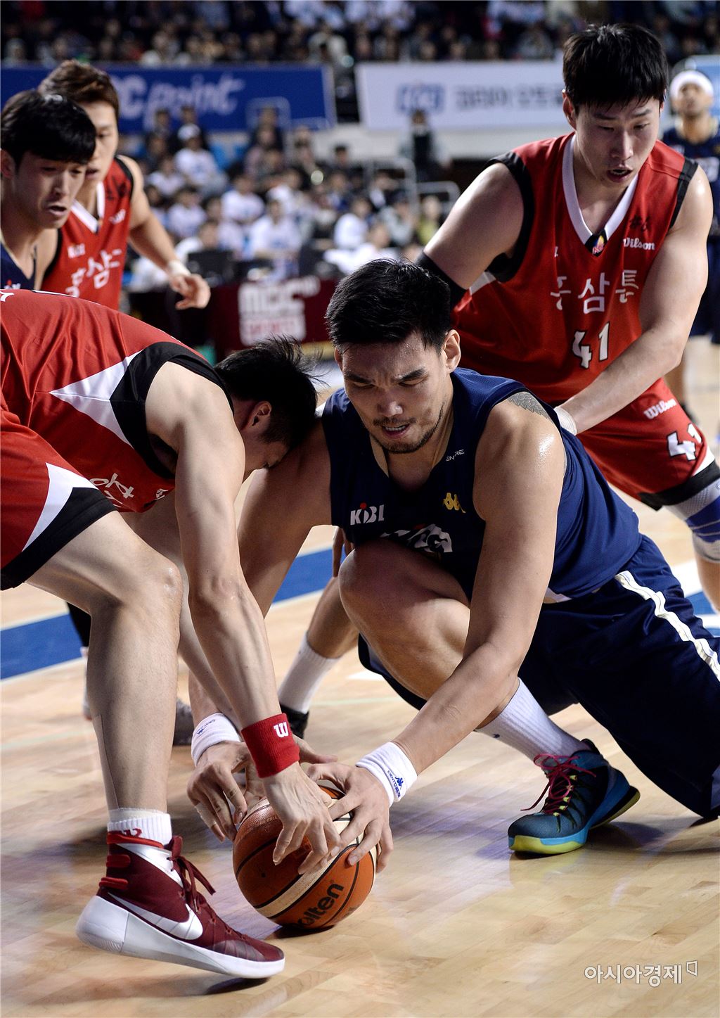 [전주=아시아경제 김현민 기자] 2015~2016 프로농구 4강 플레이오프 전주 KCC와 안양 KGC의 경기가 7일 전주실내체육관에서 열렸다. KCC 하승진이 상대 양희종과 공을 다투고 있다. 김현민 기자 kimhyun81@asiae.co.kr<ⓒ세계를 보는 창 경제를 보는 눈, 아시아경제(www.asiae.co.kr) 무단전재 배포금지>