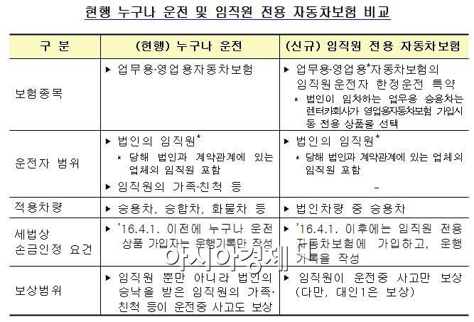 [아시아경제 구채은 기자] #이여진씨(36세·가명)는 남편이 대표로 있는 법인 명의로 고가의 외제차를 구매했다. 인근 백화점 쇼핑은 물론이고 주말 장거리 여행을 떠날 때도 꼭 이 차를 타고 다니면서 기름값, 자동차세, 수선비는 회사 경비로 처리했다. 최근엔 경미한 접촉사고를 냈는데 그 보험료도 법인 비용으로 부담했다. '사모님 차량'으로 편법 운용된다는 논란을 빚어왔던 법인 차량과 관련된 세법 시행령이 다음달부터 대폭 바뀐다. 법인차량이 임직원 전용 자동차보험에 가입된 경우에만 비용으로 인정할 수 있도록 법인세법 시행령이 전면 개정됐기 때문이다.8일 금융감독원은 법인세법 시행령 개정으로 4월1일부터 '임직원 전용 자동차보험'이 출시된다고 밝혔다. 이에따라 다음달부터 전 손해보험사는 달라진 '임직원 자동차보험'을 판매할 예정이다. 이 보험의 보상 운전자 범위는 당해 법인의 임직원으로 한정된다. 금감원 관계자는 "이 보험에 가입한 후에는 법인의 가족이나 친척 등 임직원 외의 자가 운전해 발생한 사고는 보험처리가 되지 않다"면서 "계약관계에 있는 운전자만 운전해야 함을 유념해야 할 것"이라고 말했다. 적용 차량 범위도 바뀐다. 기존에 업무용과 영업용 자동차보험은 법인소유 승용차뿐만 아니라 승합차, 화물차 등도 피보험자동차에 해당했지만 임직원 전용 자동차보험은 법인 차량 중 승용차만 피보험 자동차에 해당된다.세법상 손금인정 요건도 달라진다. 기존에는 법인 임직원외에도 임직원의 가족이나 친척이 자동차보험에 가입했을 때도 관련 비용을 세법상 인정받을 수 있었다. 하지만 4월부터는 임직원 전용 자동차보험에 가입하고 운행기록을 쓰고 비치했을 때만 비용으로 인정받을 수 있다. 아울러 법인의 임직원이 운전 중 발생한 사고에 한해서만 보상을 받을 수 있게 된다. 또 임직원 전용 자동차 보험에 가입하면 운전범위가 제한되는 대신 보험료는 현행 업무용과 영업용 자동차 보험에 비해 0.7% 싸진다. 금감원 관계자는 "임직원 전용 자동차보험 가입시 소비자 유의사항을 안내하고 불완전판매 방지 방안 등을 마련할 예정"이라고 말했다. 구채은 기자 faktum@asiae.co.kr<ⓒ세계를 보는 창 경제를 보는 눈, 아시아경제(www.asiae.co.kr) 무단전재 배포금지>