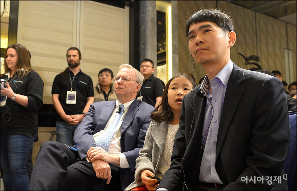 [아시아경제 윤동주 기자] 이세돌 9단과 구글 알파고의 '세기의 대결'을 앞두고 8일 서울 종로구 포시즌 호텔에서 열린 기자간담회에 참석한 이세돌 프로기사와 하사비스 구글 딥마인드 CEO가 기자들 질문에 답변하고 있다.윤동주 기자 doso7@asiae.co.kr<ⓒ세계를 보는 창 경제를 보는 눈, 아시아경제(www.asiae.co.kr) 무단전재 배포금지>
