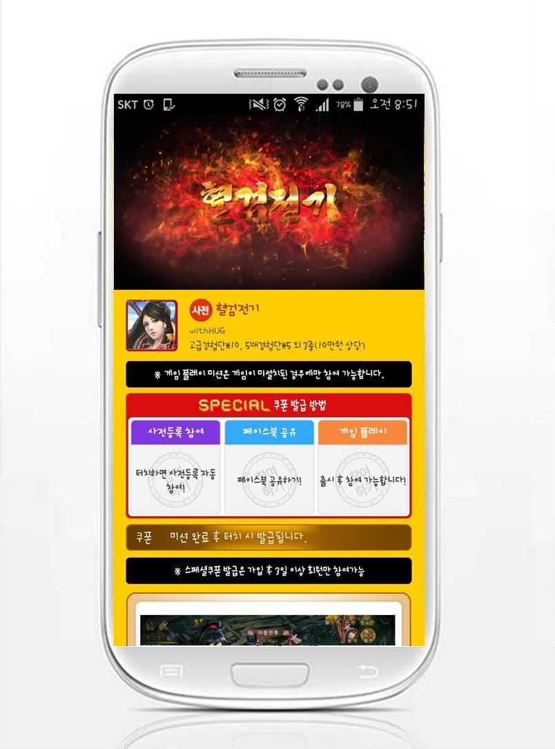 [아시아경제 온라인이슈팀] 국내 모바일 게임 시장에 95% 이상의 점유율을 보이고 있는 모바일 게임 커뮤니티 헝그리앱이 출시한 사전예약 1위 어플리케이션 ‘모비’가 유저들이 게임을 더욱 유쾌하게 즐길 수 있도록 파격적 혜택을 무료로 제공하는 스페셜 사전예약 쿠폰을 추가했다.이번에 추가한 스페셜 사전예약 쿠폰은 신작 모바일 정통 무협 MMORPG 쿠폰으로 등록하면 고급 경험단 10개, 5배 경험단 5개 외 3종으로 구성된 10만 원 상당의 파격적 혜택을 지급한다.'혈검전기'는 중국 인기 소설 '촉산협검전'을 바탕으로 '천사', '아미', '무당', '곤륜' 이상 네 개의 문파 중 하나의 캐릭터를 선택해 무림의 고수로 육성하는 정통 무협 MMORPG다. 편리한 이동과 간단한 스킬 조작만으로 실시간 전투를 즐길 수 있으며, 다른 유저들과 대결을 펼치는 '경기장', 수많은 악귀 몬스터를 시간 내에 물리치는 '만절환경', 파티원들과 함께 보스 몬스터를 사냥하는 ‘유도역절’ 등, 풍부한 대전 콘텐츠를 제공한다. 여기에 언제든지 경험치와 보상을 획득할 수 있는 스토리가 풍부한 퀘스트로 쉴 틈 없는 재미를 부가한다. 특히, 게임 내에서 이성과 함께 전투 및 수련을 할 수 있는 '결혼 시스템’과 신비로운 모습의 탑승 '팻 시스템'은 유저들의 이목을 사로잡기에 충분하다.2016년 3월 중순 정식 출시 예정인 '혈검전기'는 풍부한 콘텐츠와 화려한 스킬 그래픽, 간단한 조작법 등으로 정통 무협 MMORPG에 목마른 유저들에게 큰 기대를 모으고 있다.‘모비’는 사전예약 기능뿐 아니라 일반 게임쿠폰 및 유저가 미션을 수행해야 발급되는 스페셜 게임쿠폰, 유저간의 쿠폰 나눔, KT 고주파 솔루션을 활용한 모바일 광고 등 다양한 기능을 한자리에 구현하였다. 스페셜 쿠폰 서비스 론칭을 기념해 게임 업체에서 2천만 원 상당의 사전예약 마케팅을 무료로 진행할 수 있도록 한시적으로 프로모션을 진행 중이다.온라인이슈팀 issue@asiae.co.kr<ⓒ세계를 보는 창 경제를 보는 눈, 아시아경제(www.asiae.co.kr) 무단전재 배포금지>