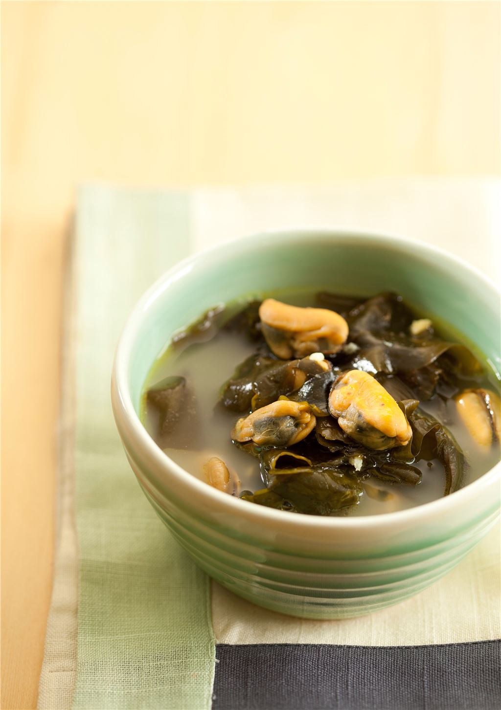 재료(2인분)마른 미역(자른 것) 1/2컵, 마른 홍합 1/4컵, 참기름 2, 다진 파 1, 다진 마늘 0.5, 국간장 2, 소금 약간만들기▶ 요리 시간 30분1. 마른 미역은 찬물에 불려 헹구어 물기를 꼭 짠다.<br />