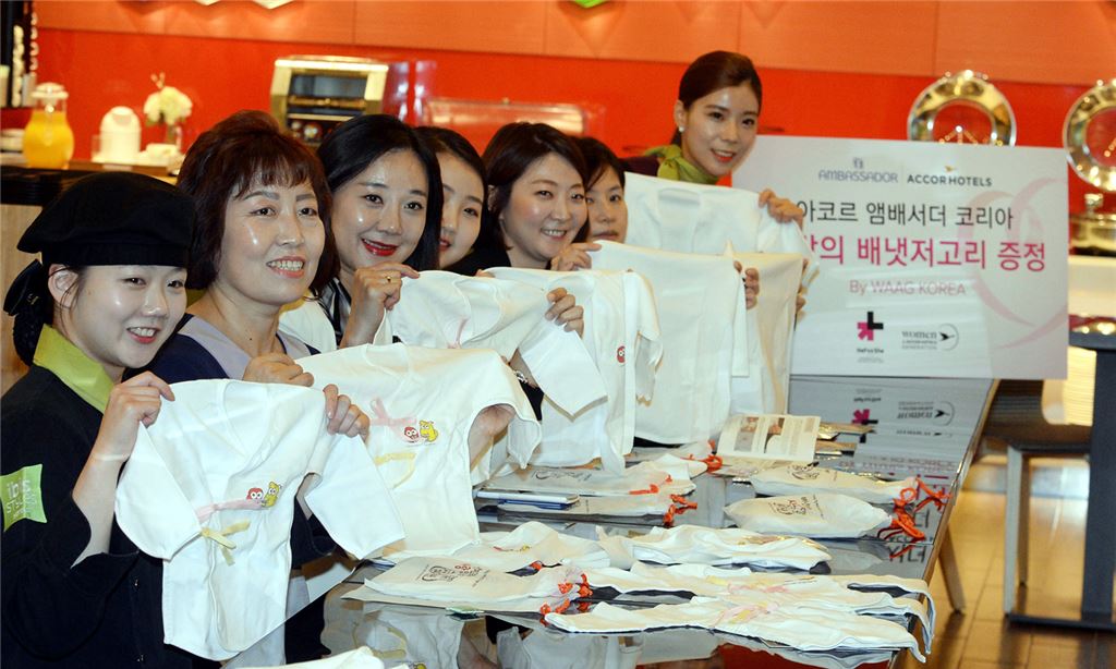 [아시아경제 오주연 기자]국내 아코르 앰배서더 호텔 계열의 여성 리더모임 와그 코리아가 8일 '세계 여성의 날'을 맞아 이비스 스타일 앰배서더 서울 명동호텔에서 '싱글맘을 위한 배냇저고리 만들기' 자선 행사를 가졌다.9일 아코르 앰배서더 호텔은 이번 자선 행사에 국내 풀만, 노보텔, 머큐어, 이비스, 이비스스일, 이비스버젯 등 17개 호텔의 매니저급 이상 간부들 80여명이 참석했다고 밝혔다.이 행사는 사회적 인식 및 경제적 자립 등으로 어려움을 겪는 싱글맘들에게 사랑과 격려를 전하기 위해 기획됐다. 이날 만든 배냇저고리는 '함께하는 사랑밭'을 통해 싱글맘들에게 전달된다. 이 외에도 여성근로자들이 처한 현실을 공감하고 이를 슬기롭게 대처할 수 있는 비법 공유의 시간을 마련, '일과 삶의 밸런스를 맞추는 슈퍼우먼의 비법'이라는 주제로 릴레이 강의를 이어나갔다. 와그 코리아는 전 세계 3800여개의 호텔을 운영하고 있는 아코르호텔그룹 산하 여성 간부 모임으로, 국내에서는 2013년 발족했다. 대한민국 1세대 여성 총지배인 송연순, 조민숙 총지배인을 비롯해 국내 17개 아코르 앰배서더 계열 여성 간부들이 참여하고 있으며 자선 바자회, 봉사 활동, 멘토링 활동 등을 전개하고 있다.오주연 기자 moon170@asiae.co.kr<ⓒ세계를 보는 창 경제를 보는 눈, 아시아경제(www.asiae.co.kr) 무단전재 배포금지>