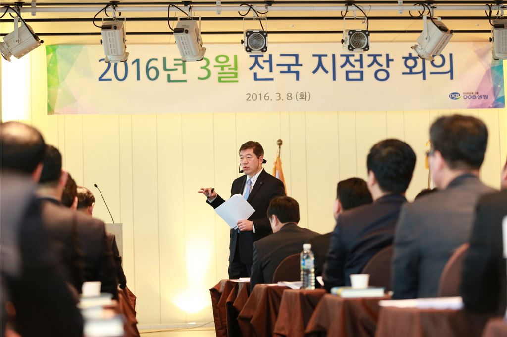 [아시아경제 강구귀 기자] DGB생명은 지난 8일 부산에서 임원, 본부장, 지점장 100여명이 참석한 가운데 전국지점장회의를 열고 설계사 채널의 가치를 극대화하는 데 총력을 기울이기로 했다고 9일 밝혔다.이날 회의에서는 영업환경 변화에 대응하기 위한 방안을 논의하고 상품과 서비스 차별화로 진정한 강소생보사로 도약을 다짐하는 시간을 가졌다. 저금리·저성장으로 대표되는 어려운 보험환경을 극복하기 위해 올해 FC채널의 가치를 높이는데 힘쓰기로 했다.사전 행사로는 부산역 광장에서 시민들에게 홍보 전단지와 기념품을 나눠주는 가두 캠페인을 진행했다. 부산 시민들에게 ‘신뢰받는 라이프 파트너(Life Partner)’라는 DGB생명의 비전을 공유하고 차별화된 보험서비스를 제공할 것을 약속했다.오익환 DGB생명 사장은 “오늘은 현장에 계신 DGB생명의 주역들과 함께 회사의 비전과 전략에 대해 공유하고 고민하는 의미있는 자리였다”며 “우리의 마음 속에 새긴 변화와 성장에 대한 의지를 성공적으로 실천할 수 있도록 모두가 노력해주길 바란다”고 당부했다.강구귀 기자 nine@asiae.co.kr<ⓒ세계를 보는 창 경제를 보는 눈, 아시아경제(www.asiae.co.kr) 무단전재 배포금지>