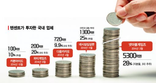 [아시아경제 안하늘 기자] 중국 게임 업체들이 막대한 자금력을 바탕으로 국내 게임 시장을 장악하고 있다. 과거 국내 인기 게임을 자국으로 수입하는 방식에서 이제는 국내 업체를 직접 인수, 지적재산권(IP)을 확보하는 방식으로 바뀌고 있다.10일 한국콘텐츠진흥원에 따르면 국내 게임 업체에 들어온 중국 자본이 약 1조2400억에 달한다. 특히 텐센트는 ▲넷마블게임즈 5300억원▲4:33 1300억원▲카카오 720억원▲파티게임즈 200억원 ▲카본아이드 100억원 등 총 8000억원 이상을 국내에 투자했다. 또 지난 2012년 500억원 규모의 펀드를 조성, 게임 개발사 등에 투자하고 있다.최근에는 국내에 투자하는 중국 업체의 범위가 확대됐다. 텐센트와 같이 2000년대 초반부터 국내에 관심을 보였던 업체에서 모바일 게임 시장이 활성화되면서 새롭게 부흥한 업체도 국내 게임사에 군침을 흘리고 있다.'마스터탱크'로 중국에서 큰 인기를 거둔 로코조이와 '도탑전기'로 흥행 기록을 세운 룽투는 지난해 초 각각 국내에서 코스닥 상장사를 인수하면서 우회상장을 했다. 중국의 모바일 게임 퍼블리싱 업체 아워팜도 지난 8일 웹젠 지분 679만5143주(지분율 19.24%)를 2039억원에 인수, 2대 주주에 올랐다.이들 중국 게임사들은 국내 게임 업체들의 IP에 관심을 두고 있다. 게임으로 만들만한 인지도 있는 한국 콘텐츠를 바탕으로 게임 개발은 중국 업체들이 직접 나선다.이는 국내 모바일 게임 개발 수준이 중국에 이미 뒤쳐졌다는 것으로 해석할 수 있다. 온라인 게임에서는 국내 업체들이 중국 업체에 기술력에서 우위를 보였지만 모바일 게임 시장에서는 그래픽, 유저인터페이스(UI), 비즈니스 모델(BM) 부분에서 중국에 이미 기술적으로 뒤지고 있다는 지적이다.