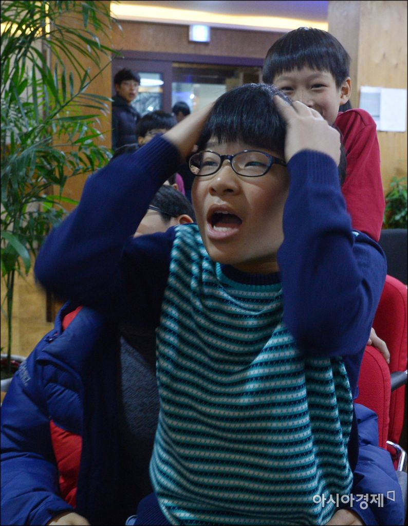 [아시아경제 윤동주 기자] 이세돌 9단과 구글의 바둑 인공지능 프로그램 알파고의 2국이 열리고 있는 10일 서울 성동구 이세돌바둑연구소에서 한 수강생이 대국 결과를 믿을수 없다는 몸짓을 하고 있다.윤동주 기자 doso7@asiae.co.kr<ⓒ세계를 보는 창 경제를 보는 눈, 아시아경제(www.asiae.co.kr) 무단전재 배포금지>