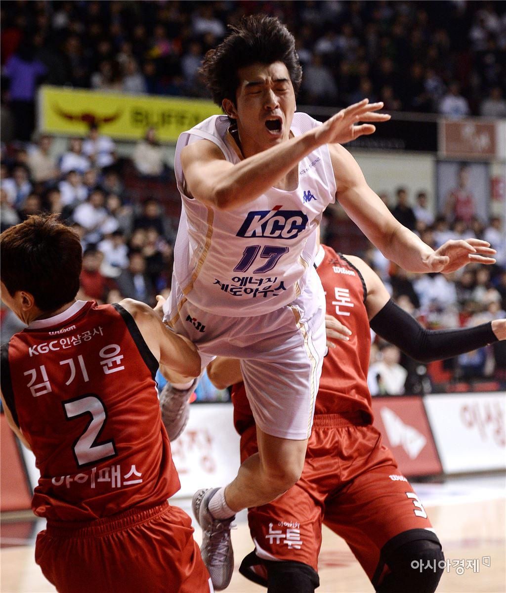 [안양=아시아경제 김현민 기자] 전주 KCC와 안양 KGC의 2015~2016 프로농구 4강 플레이오프 3차전이 11일 안양실내체육관에서 열렸다. KCC 신명호가 상대 김기윤의 파울에 걸려 넘어지고 있다. 김현민 기자 kimhyun81@asiae.co.kr<ⓒ세계를 보는 창 경제를 보는 눈, 아시아경제(www.asiae.co.kr) 무단전재 배포금지>