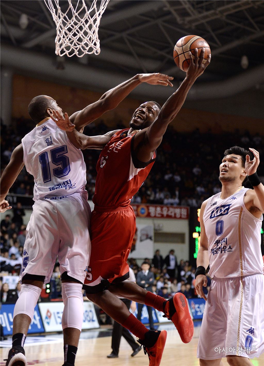 [안양=아시아경제 김현민 기자] 전주 KCC와 안양 KGC의 2015~2016 프로농구 4강 플레이오프 3차전이 11일 안양실내체육관에서 열렸다. KGC 마리오가 상대 수비를 뚫고 공격하고 있다. 김현민 기자 kimhyun81@asiae.co.kr<ⓒ세계를 보는 창 경제를 보는 눈, 아시아경제(www.asiae.co.kr) 무단전재 배포금지>