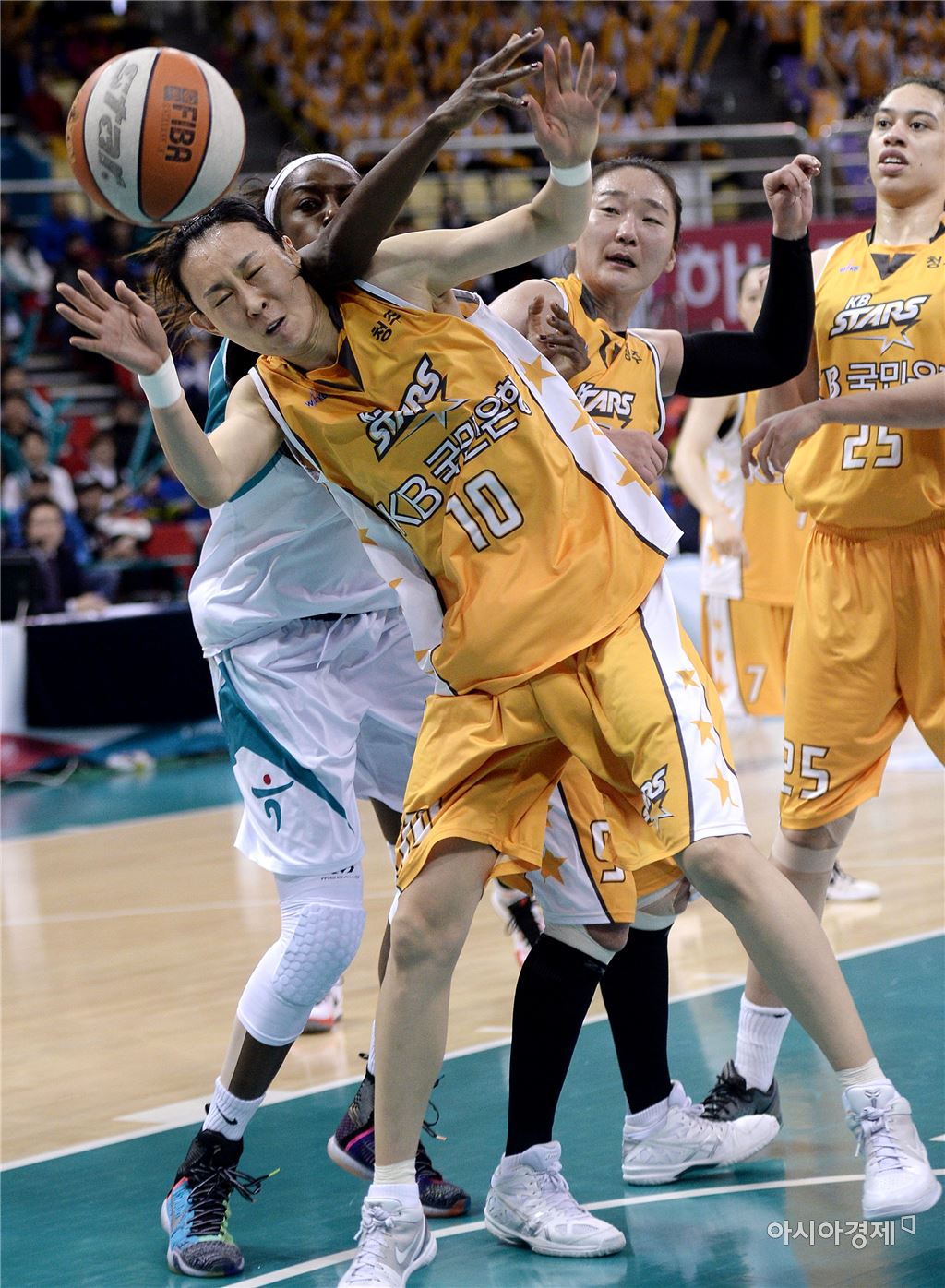 [부천=아시아경제 김현민 기자] 여자프로농구 KEB하나은행과 KB스타즈의 2015~2016 시즌 플레이오프 3차전이 13일 부천실내체육관에서 열렸다. KB국민은행 변연하가 상대 모스비와 리바운드를 다투고 있다. 김현민 기자 kimhyun81@asiae.co.kr<ⓒ세계를 보는 창 경제를 보는 눈, 아시아경제(www.asiae.co.kr) 무단전재 배포금지>