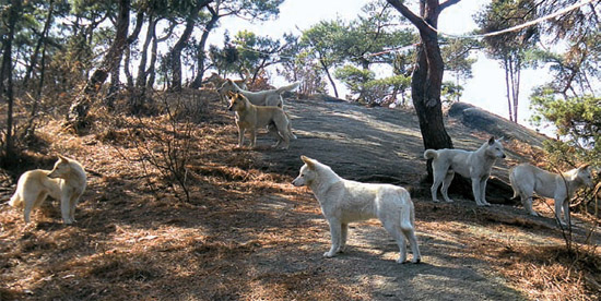북한산을 무리지어 다니는 들개.