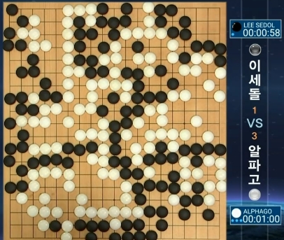 [아시아경제 박충훈 기자] 계속 이세돌이 세를 비트는 시도를 하는 반면 알파고는 의미없는 수를 교환하며 사석을 만들어내고 있다. 알파고가 유리한 상황일 때 나오는 알고리즘이다. 지금 상황이면 계가까지 갈듯하다. 불계로 끝났던 지난 4국과는 달리 팽팽한 접전이다. 전문가들은 알파고의 한집반 혹은 두집반 승을 예상하고 있다.박충훈 기자 parkjovi@asiae.co.kr<ⓒ세계를 보는 창 경제를 보는 눈, 아시아경제(www.asiae.co.kr) 무단전재 배포금지>