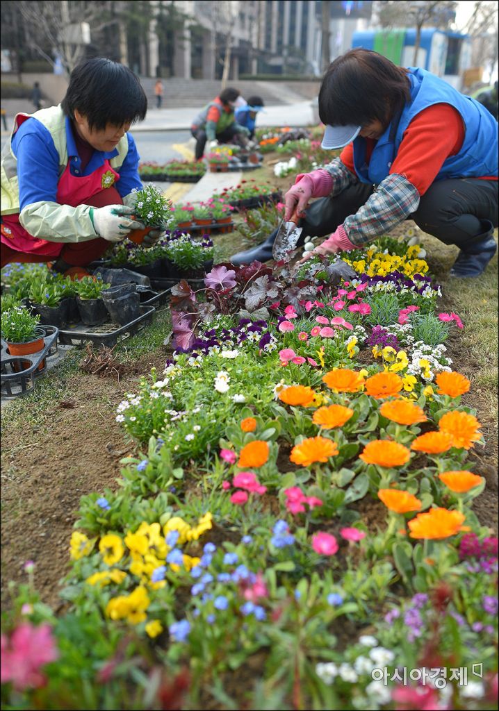 [아시아경제 윤동주 기자] 새 봄을 맞아 16일 서울 청계광장에서 환경미화원들이 봄 꽃을 심고 있다.윤동주 기자 doso7@asiae.co.kr<ⓒ세계를 보는 창 경제를 보는 눈, 아시아경제(www.asiae.co.kr) 무단전재 배포금지>