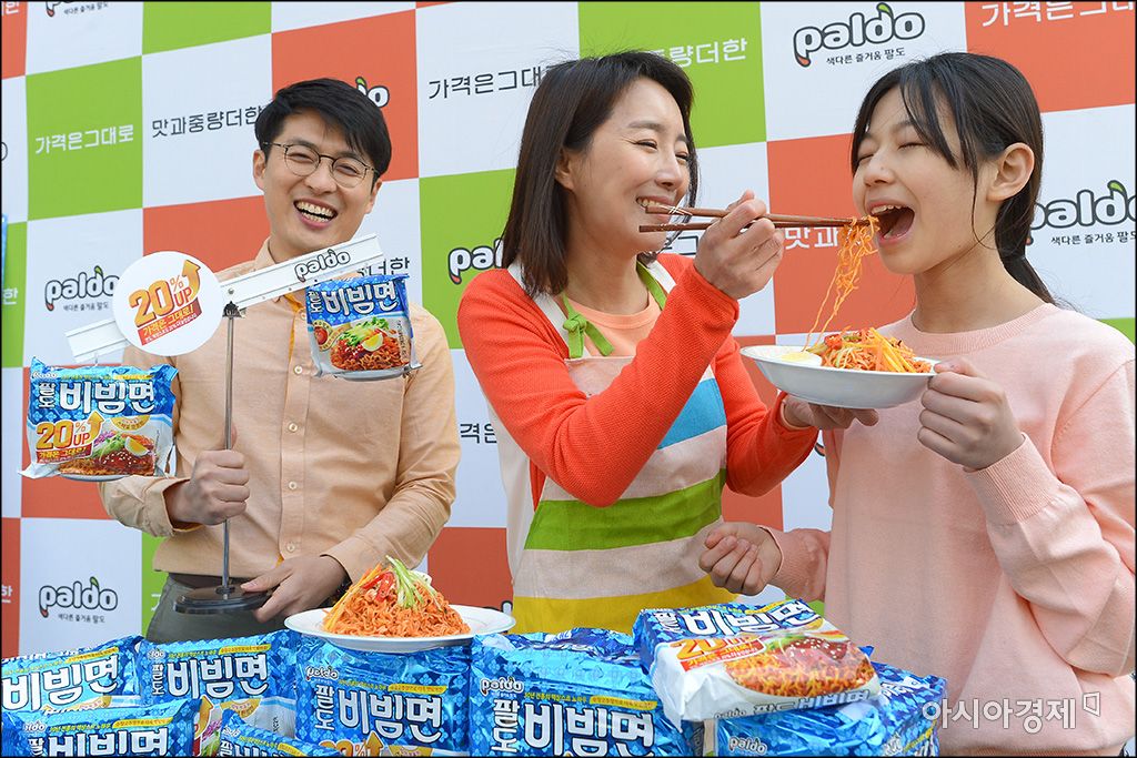 [아시아경제 윤동주 기자] 팔도비빔면 누적 판매 10억개 돌파를 기념해 16일 서울 청계광장에서 '팔도비빔면 1.2' 출시 기념 퍼포먼스를 갖고 있다. '팔도비빔면 1.2는 기존 제품대비 중량이 약 20%가량 늘리고, 가격 인상이 없는것이 특징이다.윤동주 기자 doso7@asiae.co.kr<ⓒ세계를 보는 창 경제를 보는 눈, 아시아경제(www.asiae.co.kr) 무단전재 배포금지>