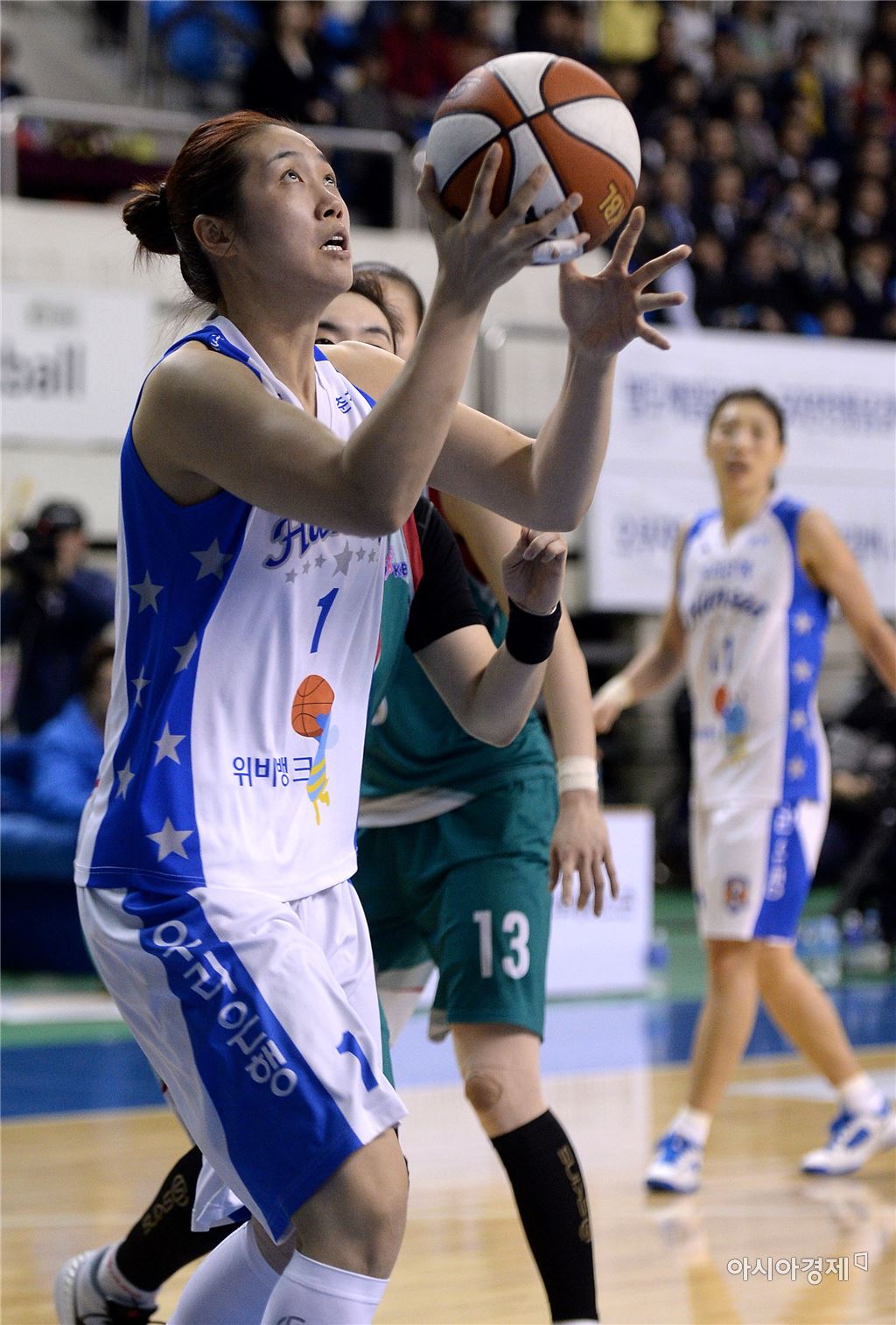 [춘천=아시아경제 김현민 기자] 여자프로농구 춘천 우리은행과 부천 KEB하나은행의 2015~2016 시즌 챔피언결정 1차전이 16일 춘천 호반체육관에서 열렸다. 우리은행 양지희가 상대 수비를 뚫고 공격하고 있다. 김현민 기자 kimhyun81@asiae.co.kr<ⓒ세계를 보는 창 경제를 보는 눈, 아시아경제(www.asiae.co.kr) 무단전재 배포금지>