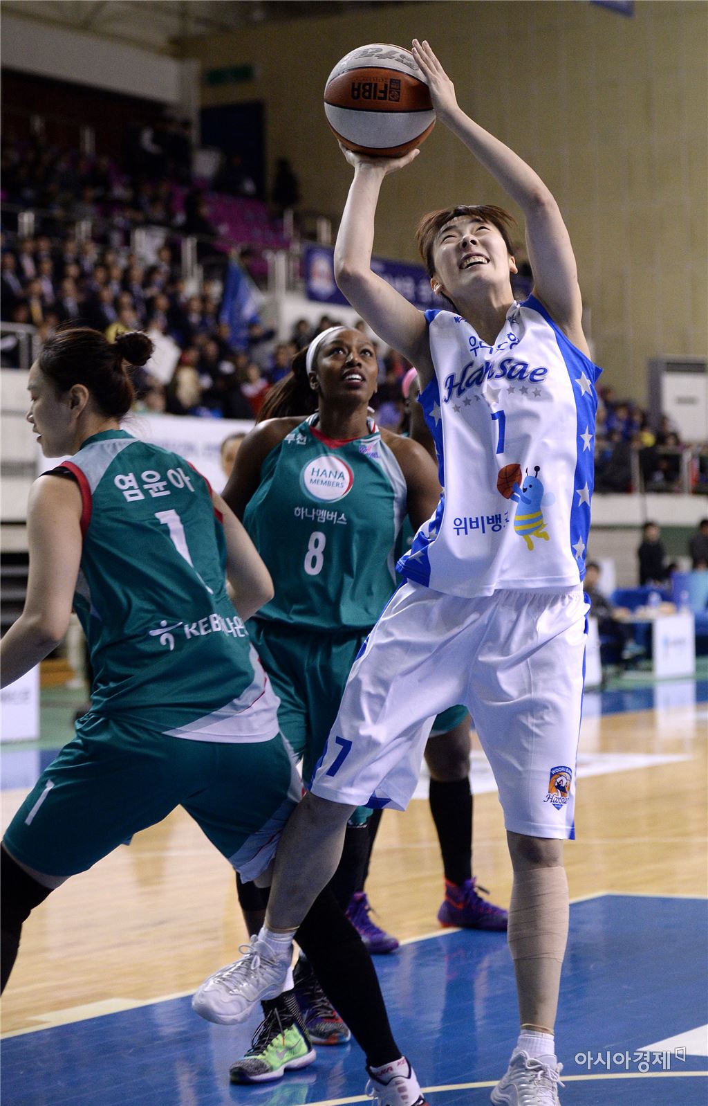 [춘천=아시아경제 김현민 기자] 여자프로농구 춘천 우리은행과 부천 KEB하나은행의 2015~2016 시즌 챔피언결정 2차전이 17일 춘천 호반체육관에서 열렸다. 우리은행 박혜진이 상대 수비를 뚫고 공격하고 있다. 김현민 기자 kimhyun81@asiae.co.kr<ⓒ세계를 보는 창 경제를 보는 눈, 아시아경제(www.asiae.co.kr) 무단전재 배포금지>