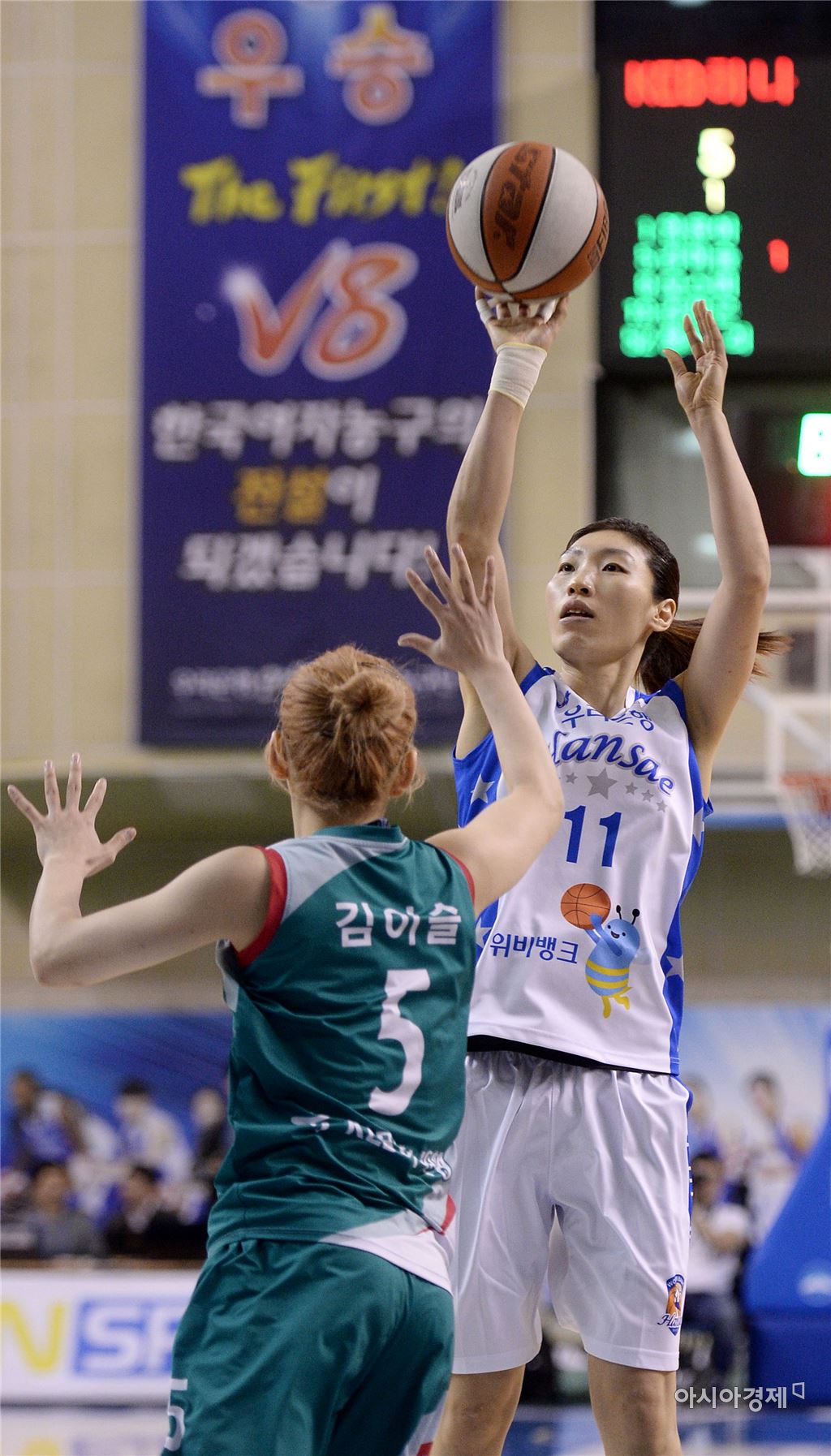 [춘천=아시아경제 김현민 기자] 여자프로농구 춘천 우리은행과 부천 KEB하나은행의 2015~2016 시즌 챔피언결정 2차전이 17일 춘천 호반체육관에서 열렸다. 우리은행 임영희가 상대 수비를 뚫고 공격하고 있다. 김현민 기자 kimhyun81@asiae.co.kr<ⓒ세계를 보는 창 경제를 보는 눈, 아시아경제(www.asiae.co.kr) 무단전재 배포금지>