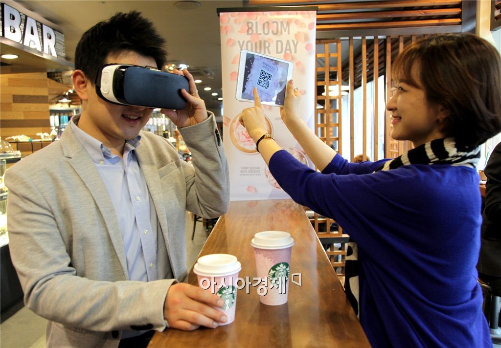 [아시아경제 오주연 기자] 스타벅스가 차세대 플랫폼으로 주목 받는 가상현실(VR)을 활용한 360도 영상 서비스를 첫 개시한다고 20일 밝혔다. 체리블라썸 시즌을 앞두고 가장 먼저 체리블라썸 음료와 머그, 텀블러, 푸드, 카드 등 신규상품을 소개한 스타벅스의 첫 가상현실 영상은 17일부터 스타벅스커피 코리아 공식 페이스북과 유튜브 채널을 통해 공개됐다. 벚꽃이 입체적으로 흩날리는 스타벅스의 체리블라썸 가상현실 영상은 별도의 VR 장비 없이도 스마트폰을 통해 시청이 가능하다. 모바일 기기로 접속 시 최신 버전의 페이스북 앱 또는 유튜브 앱에서 화면을 터치하거나 스마트폰을 상하좌우로 움직이며 시청하면 좋다. PC로 접속 시 구글 크롬(Chrome) 브라우저를 통해 시청이 가능하다. 이 영상에는 다양한 장소와 시간대별로 체리블라썸 음료를 즐기는 일상이 360도로 표현돼 있다. 오전 8시 출근 길에 매장에서 모닝커피를 즐기는 모습, 12시 30분에 사무실에서 동료들과 커피 브레이크를 갖는 모습, 오후 4시 학교에서 친구와 커피 마시며 공부하는 모습, 오후 8시 30분에 연인과 달콤한 데이트를 즐기는 모습이 입체적으로 담겼다. 스타벅스는 360도 영상에 숨겨진 체리블라썸 음료 사이즈업 QR 쿠폰으로 온라인과 오프라인을 연결하는 이벤트도 다음달 4일까지 실시한다. 가상현실 영상을 시청하고 QR쿠폰 스크린을 캡쳐해 매장에서 체리블라썸 음료 구매 시 제시하면 사이즈를 업그레이드 해주는 내용이다. 미군부대 등 일부 매장은 제외될 수 있다.오주연 기자 moon170@asiae.co.kr<ⓒ세계를 보는 창 경제를 보는 눈, 아시아경제(www.asiae.co.kr) 무단전재 배포금지>
