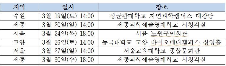 세종과학예술영재학교 ‘2017학년도 신입생 모집’ 입학설명회 일정표. 세종시교육청 제공
