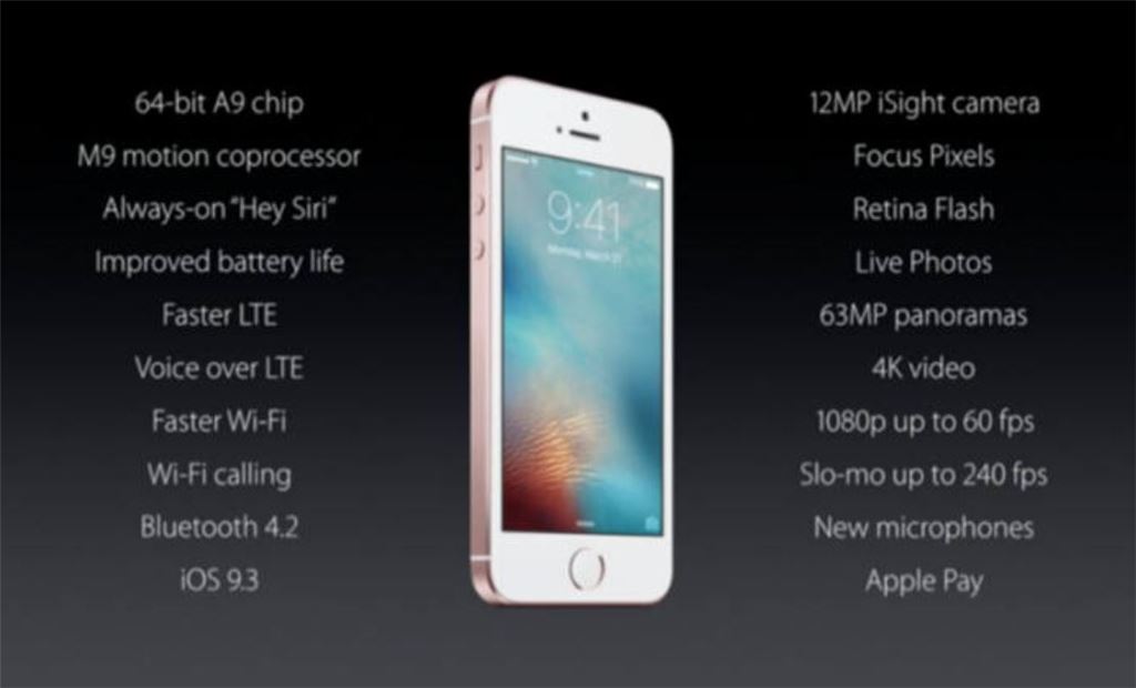 디자인은 5s, 기능은 6s…예상과 크게 다르지 않아4인치 아이폰에 대한 요구 반영…399달러(16GB)부터24일 예판 시작, 30일 출시…미국, 영국, 캐나나 등서 1차 출시[아시아경제 김유리 기자] 애플이 21일(현지시간) 미국 캘리포니아 쿠퍼티노 애플캠퍼스 타운홀에서 4인치 '아이폰 SE'를 공개했다. 디자인은 '아이폰5s'와 유사하나 주요 기능은 '아이폰6s'와 닮은 제품이다. 애플은 "4인치 아이폰에 대한 요구가 많으며 여전히 전 세계에서 디스플레이의 크기가 작은 폰이 많이 팔린다"고 말하며 이번 제품을 선보이게 된 계기를 밝혔다. 디자인은 전작 격인 아이폰5s와 유사하다. 컬러는 로즈골드가 추가됐다. 그러나 성능은 아이폰6s급이다. 64비트 기반 A9 CPU를 사용했고 M9 모션 보조 프로세서 역시 적용됐다. CPU는 아이폰6s와 동급이며 아이폰5s 대비 2배의 성능이다. 아이폰 SE에서는 또 항상 켜져 있는 음성비서 '시리'를 바로 불러내고 질문에 대한 대답을 들을 수 있다. 배터리 역시 개선됐다. 카메라도 아이폰6s와 닮았다. 1200만화소 아이사이트 카메라가 적용됐으며 아이폰6s 카메라의 특징적인 기능이었던 '라이브 포토' 역시 적용됐다. 라이브 포토는 촬영된 사진을 길게 터치하면 사진을 찍은 앞뒤 3초간을 동영상처럼 보여주는 기능이다. 이밖에 포커스 픽셀, 투톤 플래시 등도 적용됐다. 630만화소급 파노라마 촬영과 4K 비디오 촬영 역시 가능하다.네트워크도 아이폰5s에 비해 50% 빠르며 와이파이 역시 3배 가까이 빨라졌다.터치ID와 근거리 무선통신(NFC)이 지원돼 애플페이를 사용할 수 있다. 아이폰 SE는 영국, 캐나다, 중국, 미국, 뉴질랜드 등에서 먼저 만나볼 수 있다. 예약가입은 오는 24일부터 시작되며 판매 시작일은 30일이다. 아이폰 SE는 재활용 가능한 알루미늄 바디를 갖췄으며 가격은 16기가바이트(GB) 모델이 399달러, 64GB 모델이 499달러다.약정 프로그램 가입시 한 달에 17달러부터 구매할 수 있다. 5월 말에는 전 세계 110개국에서 아이폰 SE를 만나볼 수 있을 것으로 보인다. 아이폰 SE에는 이날 발표된 iOS 9.3이 적용된다. 김유리 기자 yr61@asiae.co.kr<ⓒ세계를 보는 창 경제를 보는 눈, 아시아경제(www.asiae.co.kr) 무단전재 배포금지>