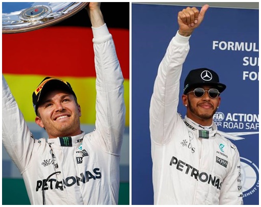 니코 로스베르크(왼쪽)와 루이스 해밀턴[사진=세계자동차연맹(FIA) 페이스북]
