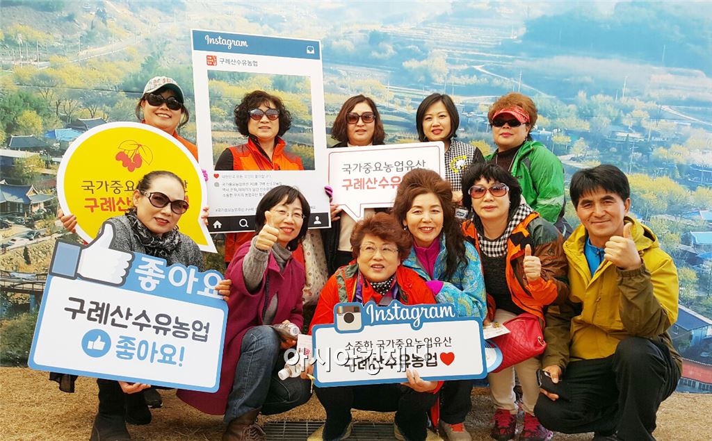"산수유꽃축제 행사장 내 농업유산 전시?체험 프로그램 '좋아요' ”[아시아경제 이진택 기자]구례산수유꽃축제가 한창인 구례군 산동면 행사장 내에서 “산수유학교”가 관광객들의 시선을 사로잡고 있다.이 홍보부스는 2014년 6월 국가중요농업유산 제3호로 지정받은 구례 산수유농업의 우수성을 알리기 위해 군과 주민협의체인 구례산수유농업 보전협의회(회장 윤현상)가 공동 운영 중인 곳이다. 먼저 전시영역에서 산수유농사와 관련된 사진으로 산수유농업의 역사와 문화, 농업유산적인 가치를 보고 배운 다음 체험영역에서 이와 관련된 퀴즈를 풀고 기념품도 받을 수 있다.포토존에서는 산수유 군락지 풍경을 배경으로 사진을 찍은 후 “산수유 학교”공식 SNS에 게시한 참여자들에게 기념품을 제공하는 온라인 홍보 이벤트도 진행하고 있다.홍보부스에 방문한 한 관광객은 “산수유는 꽃으로만 알고 있었는데 홍보부스에서 산수유 농사의 역사와 문화, 그 안에 담긴 삶의 이야기를 보고 느낄 수 있어서 좋았다”고 말했다. 또한, 축제 개막 당일인 19일에는 이낙연 전남도지사와 서기동 군수가 이곳을 방문하여 산수유 농업인들을 격려하며 “산수유 학교”공식 SNS에 구례산수유농업을 응원하는 메시지를 남기기도 했다. 한편, 군은 국가중요농업유산인 구례산수유농업과 기존 문화관광자원을 연계하고 이를 글로벌 자원으로 활용하기 위해 FAO의 세계중요농업유산 등재를 추진하고 있으며, 오는 6월 금산군에서 열리는 ERAHS(동북아 지역 농업유산협의회) 국제 콘퍼런스에 참석하여 구례산수유농업의 가치와 보전노력을 발표할 계획이다.이진택 기자 <ⓒ세계를 보는 창 경제를 보는 눈, 아시아경제(www.asiae.co.kr) 무단전재 배포금지>