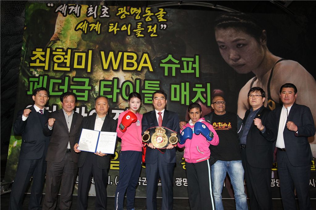 [아시아경제(광명)=이영규 기자] 창조경제 메카 '광명동굴'에서 오는 27일 세계 여자 복싱경기가 열린다. 광명시는 탈북여성으로 한국 유일의 세계 챔피언인 최현미 선수가 27일 오후 6시 광명동굴 예술의전당에서 WBA(세계권투협회)슈퍼페더급 3차 방어전을 갖는다고 24일 밝혔다. 동굴에서 세계 타이틀전이 열리는 것은 이번이 처음이다.이번 광명동굴 세계타이틀 매치는 SPOTV와 네이버, SPOTV 유튜브를 통해 생중계된다. 광명시 관계자는 "이번 광명동굴 세계타이틀 매치는 얼마 전 끝난 이세돌 9단과 인공지능 알파고와의 바둑대결로 바둑붐이 일고 있는 것처럼 침체된 한국 복싱과 광명동굴의 동반 인기 붐 조성에 기여할 것"이라고 설명했다.앞서 양기대 광명시장은 23일 광명동굴 예술의 전당에서 김정표 한국권투협회 대표, 최현미 선수, 도전자인 콜롬비아의 다이애나 아얄라, 광명권투협회 관계자 등이 참석한 가운데 대회일정과 안전 문제 등을 최종 점검했다. 이날 두 선수는 대회가 치러질 광명동굴을 둘러보고 만족감을 표시했으며 세계최초로 동굴에서 세계타이틀전이 치러지는 것에 대해 놀라움을 보였다. 최현미 선수는 "동굴에서 세계 최초로 타이틀매치를 한다고 생각하니 설렌다"며 "반드시 타이틀 방어에 성공하겠다"고 밝혔다. 최 선수는 지난 22일 제9회 통일문화대상 시상식에서 특별상을 수상했다. 이영규 기자 fortune@asiae.co.kr<ⓒ세계를 보는 창 경제를 보는 눈, 아시아경제(www.asiae.co.kr) 무단전재 배포금지>이영규 기자 fortune@asiae.co.kr<ⓒ아시아 대표 석간 '아시아경제' (www.newsva.co.kr) 무단전재 배포금지>