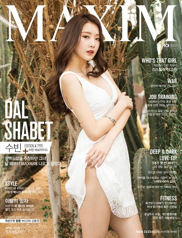 [아시아경제 온라인이슈팀] 남성지 맥심코리아는 공식 SNS계정을 통해 걸그룹 달샤벳의 멤버 수빈의 표지 컷을 선공개했다. 맥심 코리아는 SNS사진과 함께 "수빈, 날 때부터 MAXIM에 나오고 싶었다"라는 재밌는 글을 함께 게시했다.공개된 사진 속 수빈은 흰색의 원피스를 입고 볼륨감을 한껏 뽐내며, 청순함과 섹시함을 오가고 있다. <center><div class="slide_frame"><input type="hidden" id="slideIframeId" value="2015103013222982761A">