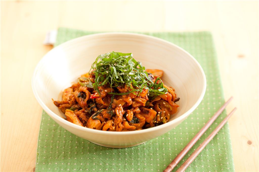 주재료(2인분)돼지고기(삼겹살) 150g, 오징어 1마리, 양파 1/4개, 깻잎 5장, 풋고추·홍고추 1개씩, 대파 1/2대, 소금·참기름·깨소금 약간씩 돼지고기 양념 재료고추장 3, 고춧가루 1, 맛술 1, 설탕 0.5, 물엿 1, 다진 마늘 1, 참기름 1, 후춧가루 약간만들기▶ 요리 시간 30분1. 삼겹살은 먹기 좋은 크기로 썰어 양념 재료에 조물조물 양념한다. <br />