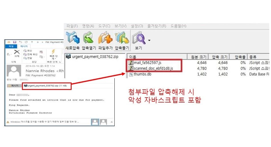 [아시아경제 박소연 기자]록키(Locky) 랜섬웨어의 변종이 급증하고 있어 기업 및 개인 사용자 주의가 필요하다. 안랩은 최근 기업 및 개인 사용자 사이에서 록키(Locky) 랜섬웨어의 변종에 의한 감염이 증가하고 있는 가운데, 피해 예방을 위한 사용자 주의사항을 발표했다. PC사용자가 록키 랜섬웨어 변종 피해를 막기 위해 주의할 사항은 2가지다.먼저 ▲관련없는 지급(payment), 송장(invoice), 계약서(contract) 등의 해외 이메일에 첨부된 파일의 실행을 금지하고, ▲메일에 첨부된 압축파일(.zip)에 자바스크립트(.js)가 존재하면 이를 실행하지 않는 것이 좋다. ◆지급(payment), 송장(invoice), 계약서(contract) 등의 내용으로 위장한 해외 이메일에 첨부된 파일 실행 금지=현재 록키 랜섬웨어 변종은 사용자가 기존 웹사이트 방문 시 감염되는 방식 등과 달리 지급(payment), 송장(invoice), 계약서(contract) 등을 사칭한 스팸 메일로 무차별 살포된다. 따라서 평소 계약이나 거래 관계가 없는 발신자나 불명확한 발신자로부터 해당 주제의 메일을 받았다면, 해당 메일의 첨부파일을 열지 않는 것이 좋다. 해외 업무가 잦은 담당자는 의심 파일을 실행하지 말고, 발신자에게 메일회신이나 전화 등으로 메일 내용을 확인하는 것이 좋다.◆메일에 첨부된 압축파일(.zip)에 자바스크립트(.js)가 존재할 시 실행 금지(그림참조)=록키 랜섬웨어 변종은 ▲스팸 메일 내 압축파일(파일 끝이름(확장자): .zip) 형태의 첨부파일에 악성 자바 스크립트(파일 끝이름(확장자): .js)를 포함하고 있고 ▲지난해 발생한 특정 웹사이트 방문 시 직접 랜섬웨어를 다운로드하던 방식과 달리, 악성 자바스크립트가 인터넷을 통해 랜섬웨어 본체를 외부에서 다운로드해 사용자 의심을 피하는 등의 특징을 가지고 있다. 프로그래밍 언어인 자바 스크립트가 단독으로 첨부파일 등에 사용되는 것은 일반적이지 않는 경우다. 따라서 수상한 메일 내 첨부된 압축파일(.zip으로 끝나는 파일)에 파일의 끝이름(확장자)이 ‘.js’인 자바 스크립트만 존재하거나, 여러 파일 중에 포함되어 있다면 이는 록키 랜섬웨어 변종일 가능성이 높다. 특히, 파일 확장자 등 컴퓨터 환경에 익숙하지 않은 사용자들은 이를 모르고 무심코 실행할 수 있어 더욱 주의가 필요하다.안랩은 V3제품군에서 록키 랜섬웨어 변종과 관련된 악성파일 진단을 지속적으로 추가하고 있으며, APT 전문 대응 솔루션 ‘안랩 MDS’에 포함된 실행보류 기능(execution holding, 네트워크에서 발견된 의심파일을 분석이 끝나기 전까지 PC에서 실행되는 것을 막아주는 기능)으로 예방이 가능하다. 또한, 안랩은 록키 랜섬웨어와 변종을 비롯한 다양한 랜섬웨어에 대한 정보를 ‘랜섬웨어 보안센터(www.ahnlab.com/kr/site/securityinfo/ransomware/index.do#cont2)에서 제공 중이다. 박태환 안랩 ASEC대응팀장은 "록키 랜섬웨어 변종은 개인 사용자나 기업·기관 내 PC 사용자를 가리지 않고 대량으로 유포된다"라며 "순간의 부주의가 개인의 피해를 넘어 자신이 속한 조직의 피해로 이어질 수 있으므로 피해예방을 위한 행동 수칙을 생활화 하는 것이 좋다"고 말했다.한편 록키 랜섬웨어 변종이 어떤 방식으로 변화할지 예측하기 어렵고, 이 외에도 다양한 랜섬웨어 위협도 발생하고 있기 때문에 랜섬웨어 전반에 대한 대비를 위해서는 ▲수상한 이메일의 첨부파일 실행 자제 ▲백신 업데이트 및 운영체제, 브라우저 및 주요 애플리케이션의 최신 보안 업데이트 적용 ▲보안이 취약한 웹사이트 방문 자제 ▲주요 자료 백업 생활화 등 기본 랜섬웨어 예방 수칙을 생활화 하는 것이 중요하다. 박소연 기자 muse@asiae.co.kr<ⓒ세계를 보는 창 경제를 보는 눈, 아시아경제(www.asiae.co.kr) 무단전재 배포금지>
