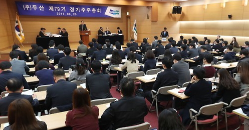 [아시아경제 고형광 기자] ㈜두산이 25일 서울 중구 충무아트홀에서 주주총회를 개최한 데 이어 이사회를 열고 박정원 회장을 이사회 의장으로 선임했다. 이로써 두산그룹은 '오너 4세' 경영 시대를 열게 됐다. 두산그룹은 지주사인 ㈜두산의 이사회 의장이 그룹 회장직을 수행하던 관례에 따라 박정원 회장이 박용만 회장에 이어 두산그룹 총수에 오르게 된 것이다. 박정원 회장은 박용곤 명예회장의 장남으로 고 박두병 창업 회장의 맏손자다. 박두병 회장의 부친인 박승직 창업주부터 따지면 두산가 4세에 해당한다. 큰 조카인 박정원 회장에게 그룹 경영권을 넘겨준 박용만 회장은 두산인프라코어 회장을 맡으면서 대한상공회의소 회장직에 전념할 것으로 알려졌다. 박용만 회장은 2012년 4월 취임해 약 4년간 그룹을 이끌어왔다. ㈜두산은 이날 주총에서 송광수 전 검찰총장과 김창환 세무법인 세광 고문을 사외이사로 재선임하고 이사 보수 한도를 작년과 같이 150억원으로 동결했다. 또 지난해 신규 취득한 면세점 사업특허권 사업을 영위하기 위해 면세판매업, 관광기념품 제조 및 판매업 등을 사업 목적에 추가했다. 모든 안건이 원안대로 통과되며 ㈜두산의 주총은 20분 만에 마무리됐다.창사 이래 최대 위기를 맞고 있는 현대중공업도 이날 울산 동구 한마음회관에서 주총을 열고 대표이사 재선임 안건을 통과시켰다. 이에 따라 최길선 대표이사 회장과 권오갑 대표이사 사장의 임기는 2018년 3월까지 늘어나게 됐다. 현대중공업은 이날 주총에서 김석동 전 금융위원장과 민유성 전 산업은행장을 임기 3년의 사외이사로도 선임했다. 현대종합상사는 현대중공업에서 계열분리 된 이후 첫 주총을 열었다. 이날 연합미디어센터에서 열린 주총에선 정몽혁 회장과 하명호 부사장의 이사 재선임안이 통과됐다. 정몽혁 현대종합상사 회장의 독립 경영이 시작된 셈이다.(주)한화, 한화케미칼 등 한화그룹 계열사들도 이날 주총을 열고 사내이사 선임 등 각종 안건을 통과 시켰다. 한화케미칼은 이날 김준호 기획부문장(전무)과 한상흠 PO 사업부장(전무)을 사내이사로, 이광민 변호사(법무법인 영진)를 사외이사로 각각 신규 선임했다. 특히 한화 계열사들은 이사의 임기를 3년에서 2년으로 단축시키는 안건을 일제히 통과시켰다. 한화 관계자는 "이사진 운영의 유연성을 확보하고 이사의 책임경영을 강화하고자 임기를 줄였다"고 설명했다. 코오롱인더스트리는 이날 경기도 과천 코오롱타워에서 주총을 열고 이웅열 회장을 사내이사로 재선임하는 등 코오롱 계열사들의 주총도 곳곳에서 열렸다. 코오롱글로벌은 사업 목적에 '화장품 등의 수출입업'을 새롭게 추가했다. 또 동국제강은 서울 중구 페럼타워에서 주총을 열고 장세욱 부회장을 2년 임기의 사내이사에 재선임했다. 이에 따라 동국제강은 장세주 동국제강 회장의 동생인 장 부회장의 단독 경영 체제가 당분간 유지될 것으로 보인다. 장세주 회장은 지난해 6월 횡령 등의 혐의로 구속 수감된 직후 대표이사 자리에서 물러났다. 이 외에도 대림산업, 대우건설, 롯데제과 등 상장기업 818곳이 이날 일제히 정기 주주총회를 열었다. 올 들어 세 번째 '슈퍼 주총데이'로 하루 주총 개최 건수로는 역대 최대 규모다.고형광 기자 kohk0101@asiae.co.kr<ⓒ세계를 보는 창 경제를 보는 눈, 아시아경제(www.asiae.co.kr) 무단전재 배포금지>