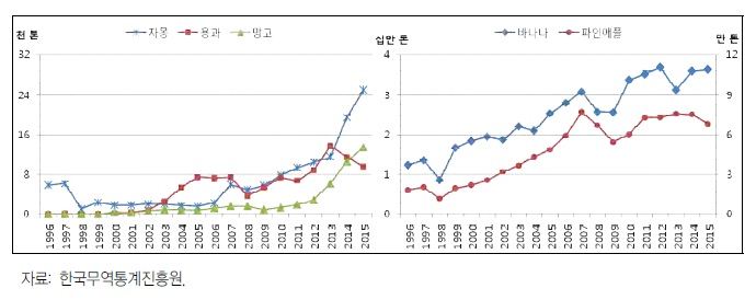 열대과일 품목별 수입량 추이