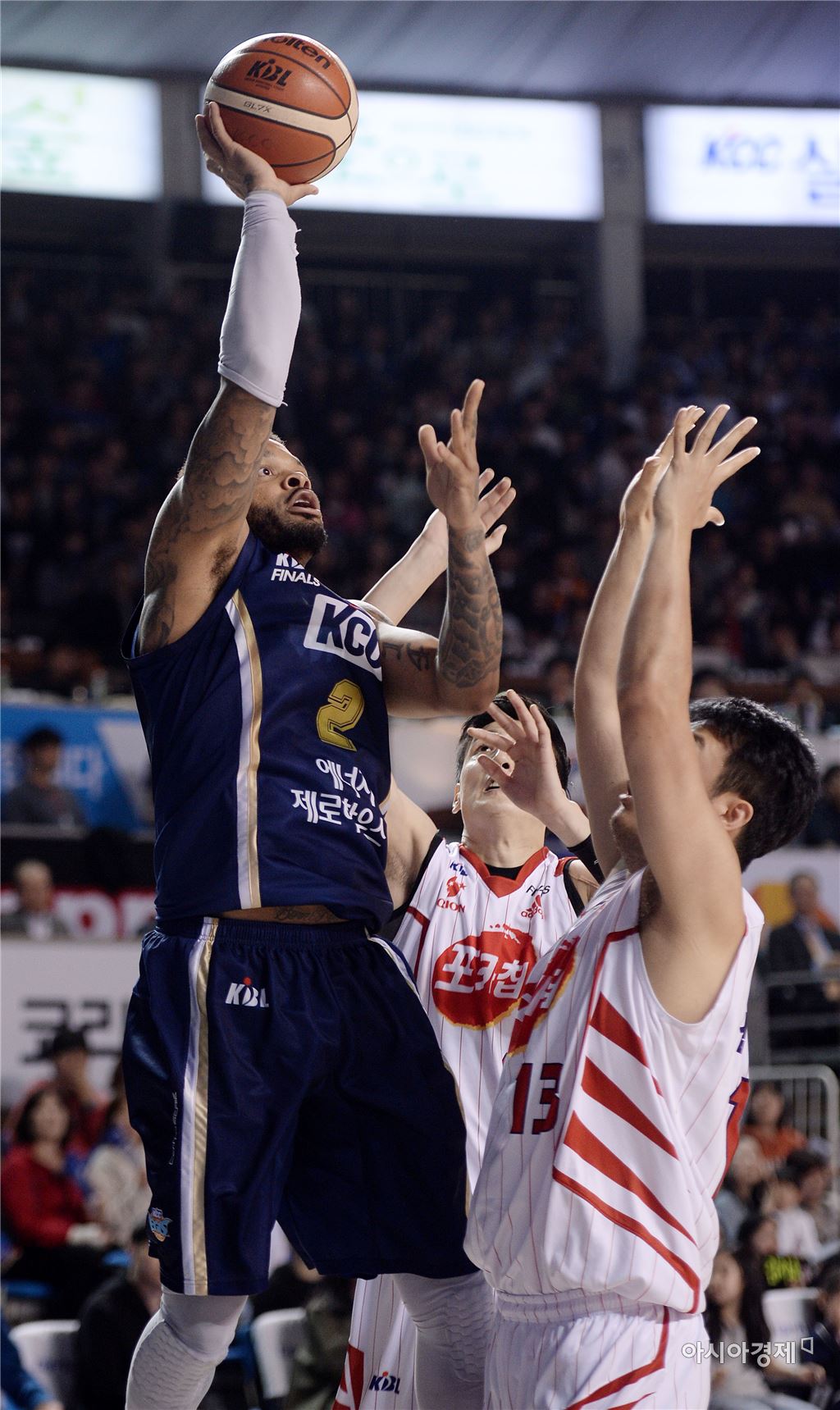 [전주=아시아경제 김현민 기자] 프로농구 전주 KCC와 고양 오리온의 2015~2016시즌 챔피언결정 5차전이 27일 전주실내체육관에서 열렸다. KCC 에밋이 상대 수비를 뚫고 공격하고 있다. 김현민 기자 kimhyun81@asiae.co.kr<ⓒ세계를 보는 창 경제를 보는 눈, 아시아경제(www.asiae.co.kr) 무단전재 배포금지>