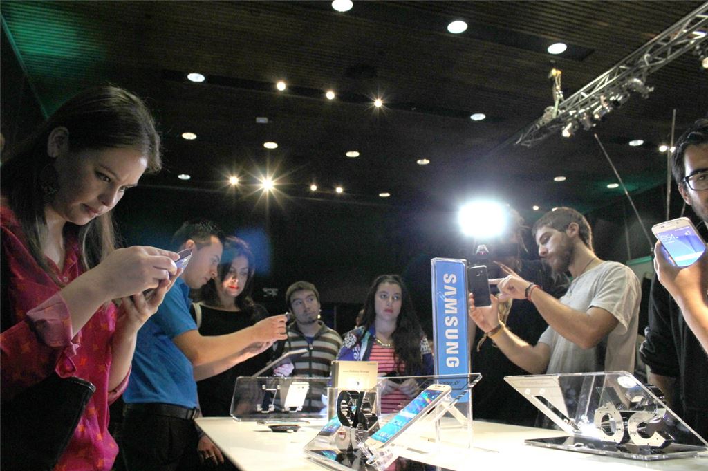 칠레 소비자들이 삼성전자의 스마트폰을 체험하고 있다.[자료=삼성전자]