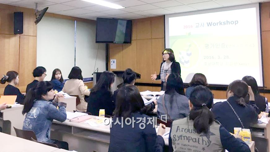 [아시아경제 노해섭 기자]호남대학교 유아교육학과 유승우, 채영란 교수가 28일 상지관 4층 강의실에서 호남대가 위탁운영을 맡고 있는 광주지방경찰청어린이집과 광주시립 보듬이나눔이 어린이집 교사들을 대상으로 워크숍을 실시했다. 이날 워크숍에서는 보육과정 중 ‘평가인증’을 주제로 영역별 지표교육과 일지작성에 관련해 논의했다. 호남대는 2014년 광주지방경찰청어린이집, 2016년 광주시립 보듬이나눔이 어린이집 등 2곳의 위탁 운영기관으로 선정돼 책임교수의 지도로 어린이집 전반적 운영과 운영위원회를 통한 학부모와의 소통, 매월 1회 교사교육 및 원장 협의회 진행, 재학생 연계 재능나눔 봉사 및 수업 참관 등을 실시하고 있다.노해섭 기자 nogary@<ⓒ세계를 보는 창 경제를 보는 눈, 아시아경제(www.asiae.co.kr) 무단전재 배포금지>